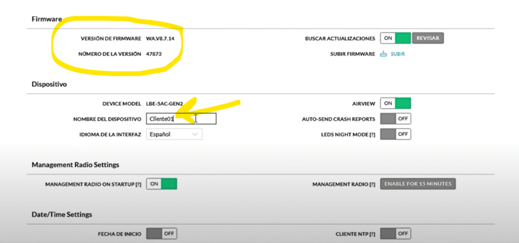 Estando en el panel de control de la antena nos dirigimos a la opcíon de SISTEMA para asegurarnos de estar con la última versión del firmware de nuestra antena actualizado, para ello nos dirigimos a la página oficial de ubiquiti y en el apartado de descargas buscamos nuestro modelo de antena y verificamos que sea el mismo firmware para poder descargarlo y subirlo a nuestra antena para actualizar.